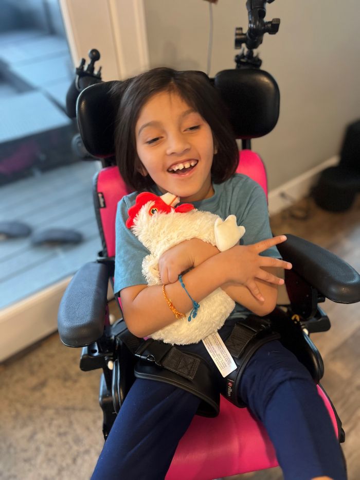 While Dr. Feyma credits Hazel’s spunk with her continued success, he also cites the supportive environment her family provides. “[Hazel’s] family and caregivers accompany her everywhere to help facilitate her drive and growth. Hazel and her ‘home team’ are the greatest allies in our efforts to help her clinically,” he says. “It takes a large village with different focuses of expertise to help Hazel. Focused treatments still require work on the home front to really see success for an individual.”