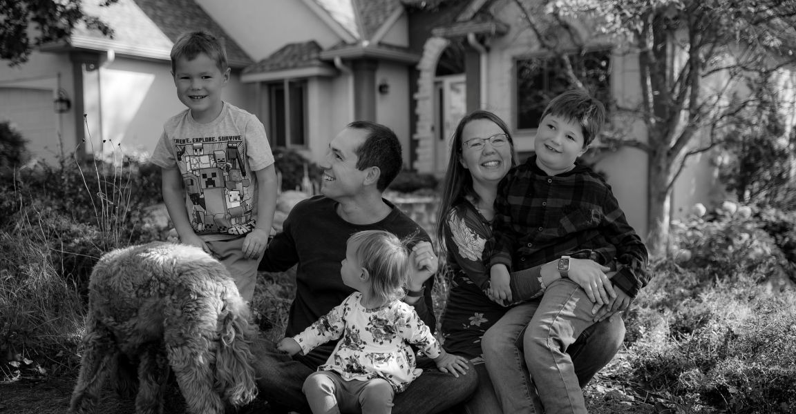 John (husband), William (10), Finley (7), Emmalyn (3), Gryffin (the pup)